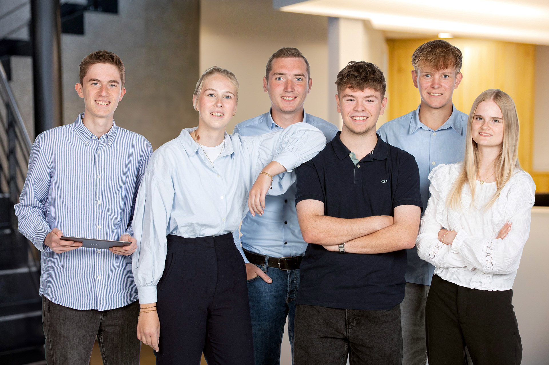 Das sind unsere aktuellen Auszubildenden Linus, Mia, Theo, Tim, Hanno und Anaïs. Jedes Jahr nehmen wir junge Leute wie dich in unser Team auf. Du wirst also immer auch mehrere Kollegen in deinem Alter zum Austausch haben.